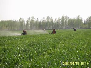 近两天,各分场已纷纷行动,因地制宜,对早 播小麦田进行施药防治。(图为七分场对出穗率达 到10%%左右的小麦田块及时喷施多菌灵药剂预防赤 霉病) (夏庆芳)